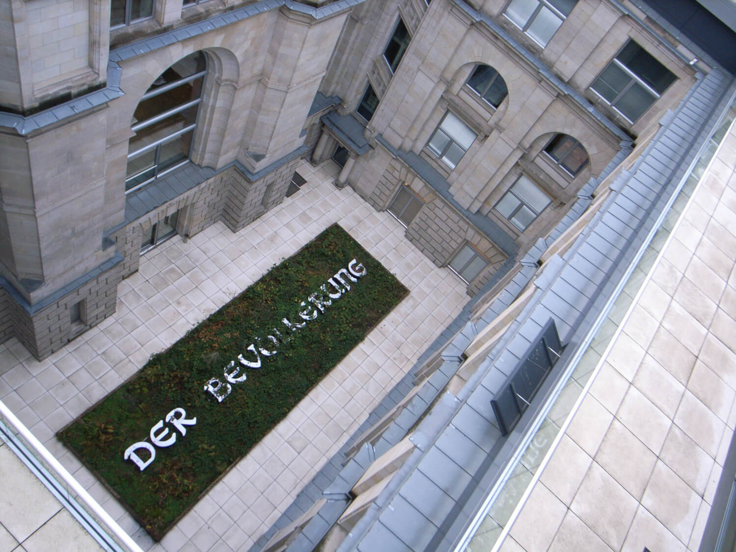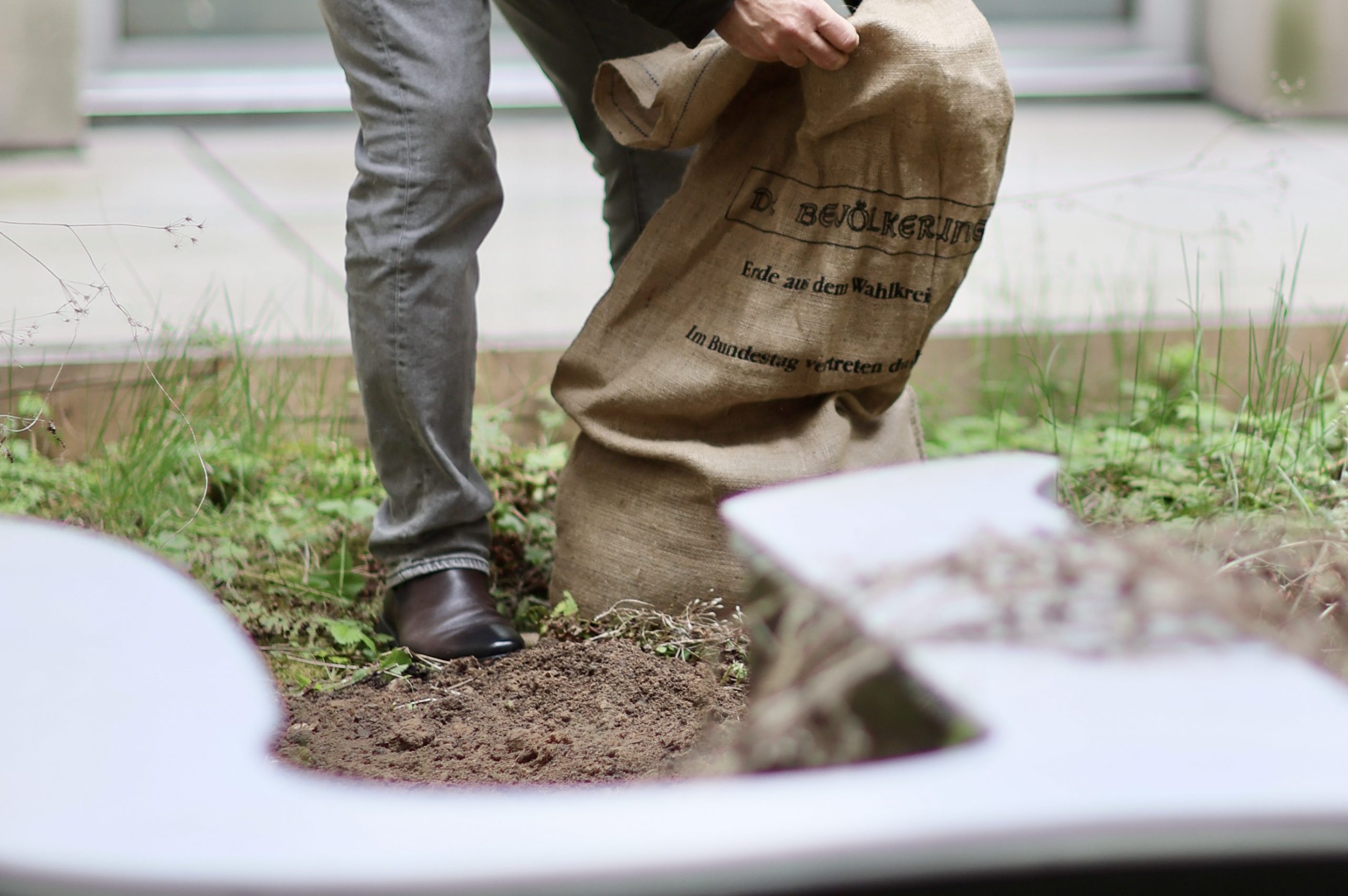 Am 12. September 2000 eröffnete der damalige Bundestagspräsident Wolfgang Thierse mit Erde aus seinem Berliner Wahlkreis das partizipatorische Kunstprojekt DER BEVÖLKERUNG von Hans Haacke im nördlichen Lichthof des Reichstagsgebäudes.